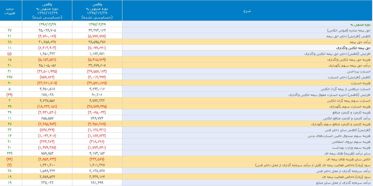 آخرین وضعیت صورت های مالی بیمه آسیا