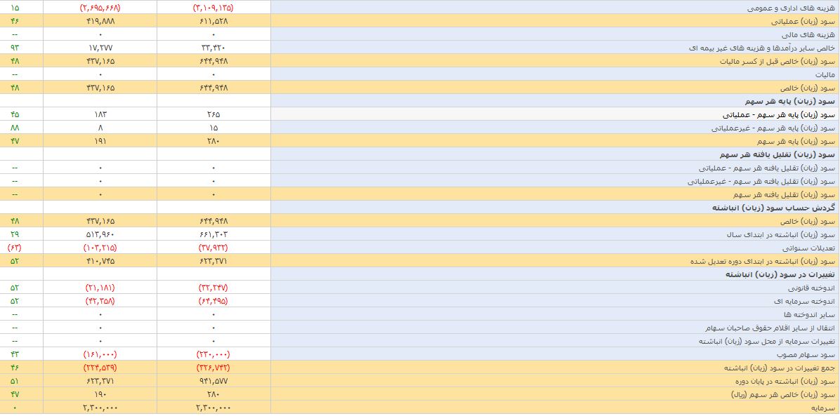بر اساس این گزارش شفاف سازی، این شرکت براساس عملکرد ۱۲ ماهه برای سال مالی منتهی به ۲۹ اسفند ماه ۹۷ مبلغ ۶۴۴.۹۴۸ میلیون ریال سود خالص محقق کرده است.
