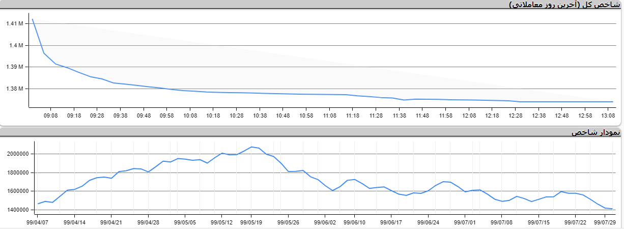 شاخص قیمت (هم وزن) نیز با کاهش ۳۱۱۹ واحدی به رقم ۲۵۴ هزار و ۹۰۶ واحد رسید. همچنین شاخص سهام آزاد شناور، ۵۱۰۸۴ واحد کاهش را رقم زد و به سطح یک میلیون و ۸۵۸ هزار واحد رسید. همچنین شاخص بازار اول با ۳۵۳۴۸ واحد کاهش به رقم ۹۵۷ هزار و ۷۸۲ واحد رسید و شاخص بازار دوم نیز، با ۴۸۸۱۴ واحد کاهش همراه بود و عدد ۲ میلیون و ۹۶۲ هزار واحد را به نمایش گذاشت.