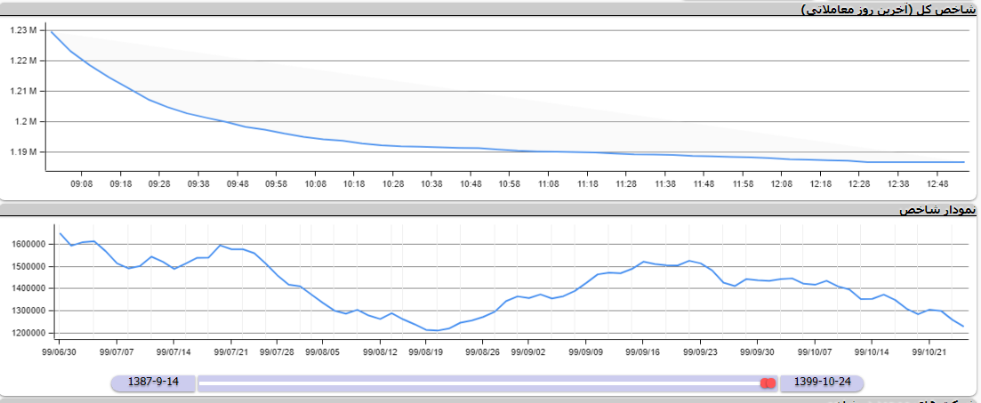 به گزارش خبرنگار ایبِنا، امروز تالار شیشهای، در معاملات اولین روز هفته (شنبه بیست و هفتم دیماه ۹۹)، شاهد ادامه روند نزولی شاخصهای منتخب بود. به گونه ای که شاخص قیمت (وزنی-ارزشی)، با کاهش ۱۱۲۴۷ واحدی معادل ۳.۵۰ درصد به رقم ۳۱۰ هزار و ۱۰۴ واحد رسید. شاخص کل هم وزن نیز، با افت ۱۰۳۱۸ واحدی معادل ۲.۲۷ درصد، عدد ۴۴۴ هزار و ۵۰۱ واحد را به نمایش گذاشت.