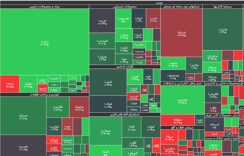 در بازار امروز، بیشترین افزایش قیمت متعلق به نماد بوعلی(پتروشیمی بوعلی سینا) با ۹.۳۷ درصد رشد و پس از آن، نمادهای اخابر، شکربن، بورس، شاملا و وتوشه بود. همچنین نماد معاملاتی ولیز(لیزینگایران) با ۲۶.۹ درصد، بیشترین کاهش قیمت را داشت و پس از آن نیز، نمادهای کساپا، سنیر، سفار، ددام ، وسگلستا و غپاک قرار گرفتند.