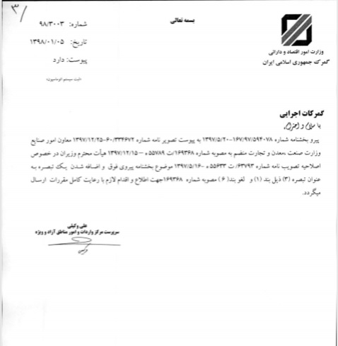تبصره ۳ بند یک مصوبه هیات وزیران که در ابلاغیه گمرک ایران مورد اشاره قرار گرفته به شرح زیر است: