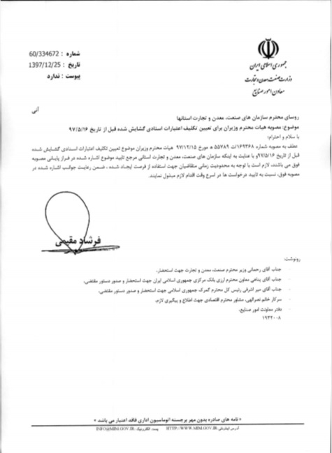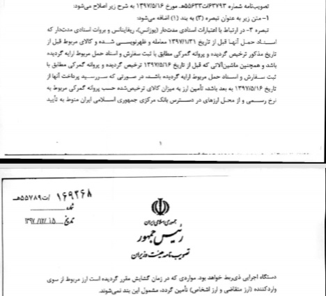گمرک ایران مصوبه هیات وزیران پیرامون اصلاح موضوع تعیین تکلیف اعتبارات اسنادی گشایش شده قبل از تاریخ ۱۶ مرداد ماه ۹۷ را ابلاغ کرد.