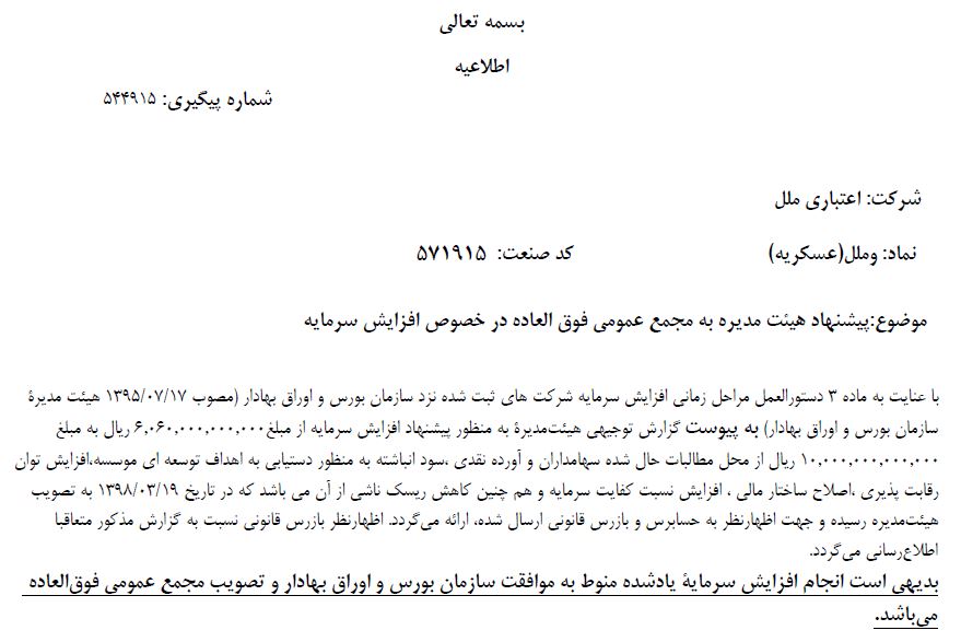 اطلاعیه شفاف سازی افزایش سرمایه اعتباری ملل