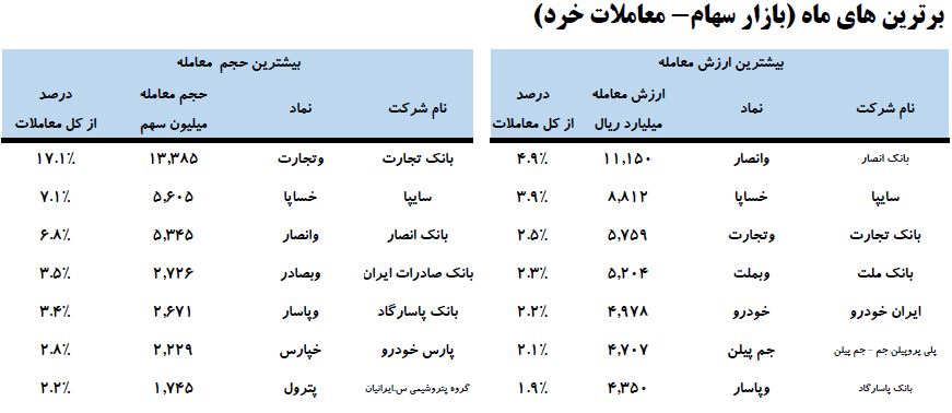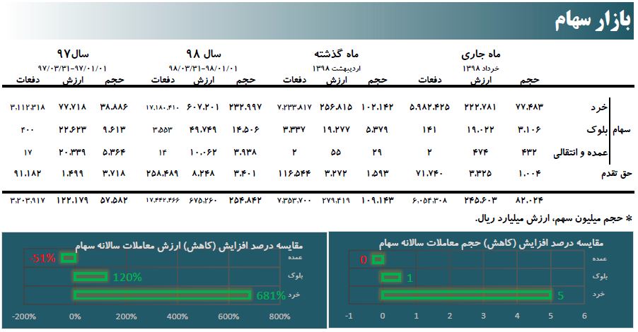 جزییات عملکرد معاملات بورس در خردا ماه ۹۸