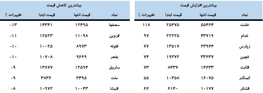 لازم به ذکر است، میزان بازده کل بورس از ابتدای سال تا کنون ۳۳ درصد بوده و نسبت قیمت به درآمد ۱۲ ماه گذشته، به رقم ۸ رسیده است.