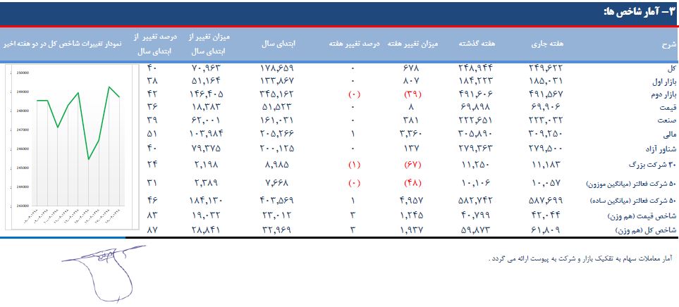 به گزارش خبرنگار ایبِنا، در پایان معاملات هفته منتهی به ۱۹ تیرماه ۹۸، شاخص کل با ۶۷۸ واحد افزایش نسبت به هفته قبل به رقم ۲۴۹.۶۲۲ واحد رسید.
