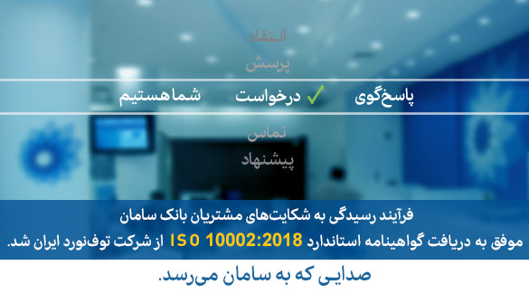 به گزارش ایبِنا و به نقل از سامان رسانه، بانک سامان پس از اجرای موفق استانداردهای مربوط به برقراری ارتباط موثر و هدفمند با مشتریان و پیگیری دقیق شکایات آنها، موفق به اخذ گواهینامه بین المللی ایزو ۱۰۰۰۲ شد. در همین حال اخذ این گواهینامه، گام مهمی در مسیر حرکت مشتری محور بانک سامان است و این امکان را فراهم کرده تا رسیدگی به شکایات مشتریان در فرآیندی اثربخش و مطلوب صورت پذیرد.