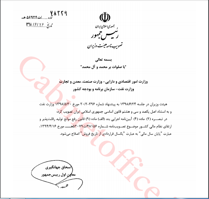 معاون اول رئیس جمهور این مصوبه را برای اجرا به وزارتخانههای امور اقتصادی و دارایی، صنعت، معدن و تجارت و نفت و سازمان برنامه و بودجه کشور ابلاغ کرد.
