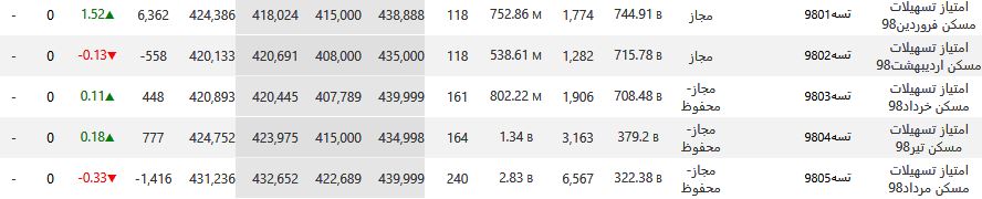 روند قیمت اوراق تسهیلات مسکن در ۵ ماهه نخست ۹۸