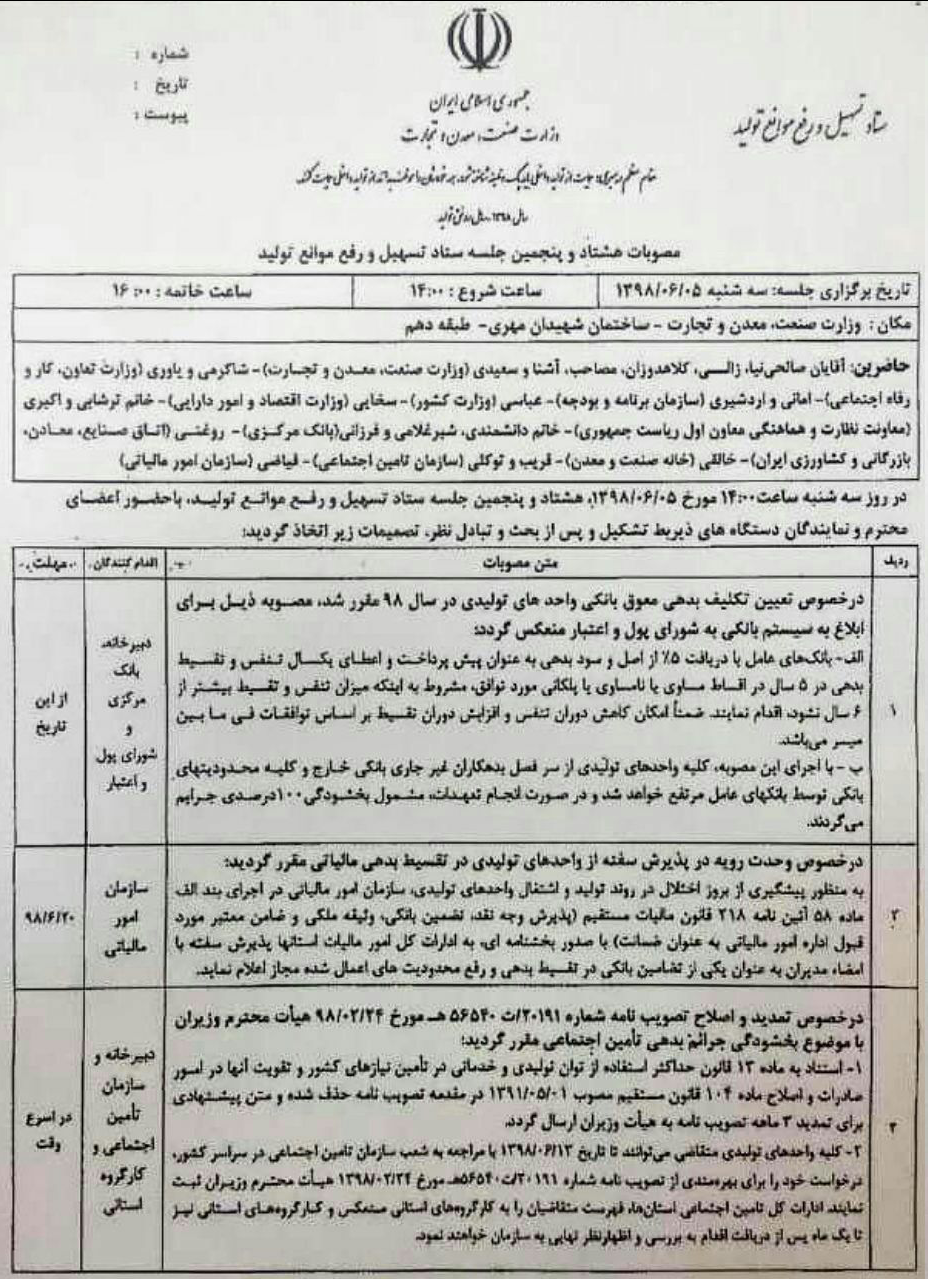 به گزارش خبرنگار ایبِنا، مصوبات هشتاد و پنجمین جلسه ستاد تسهیل و رفع موانع تولید اعلام شد که براین اساس واحدهای تولیدی دارای بدهی معوق در سال ۹۸ با پرداخت تنها ۵ درصد از اصل و سود بدهی به عنوان پیش پرداخت، از سرفصل غیرجاری خارج شده و بدهی آنها پس از یکسال تنفس، ۵ سال تقسیط میشود.