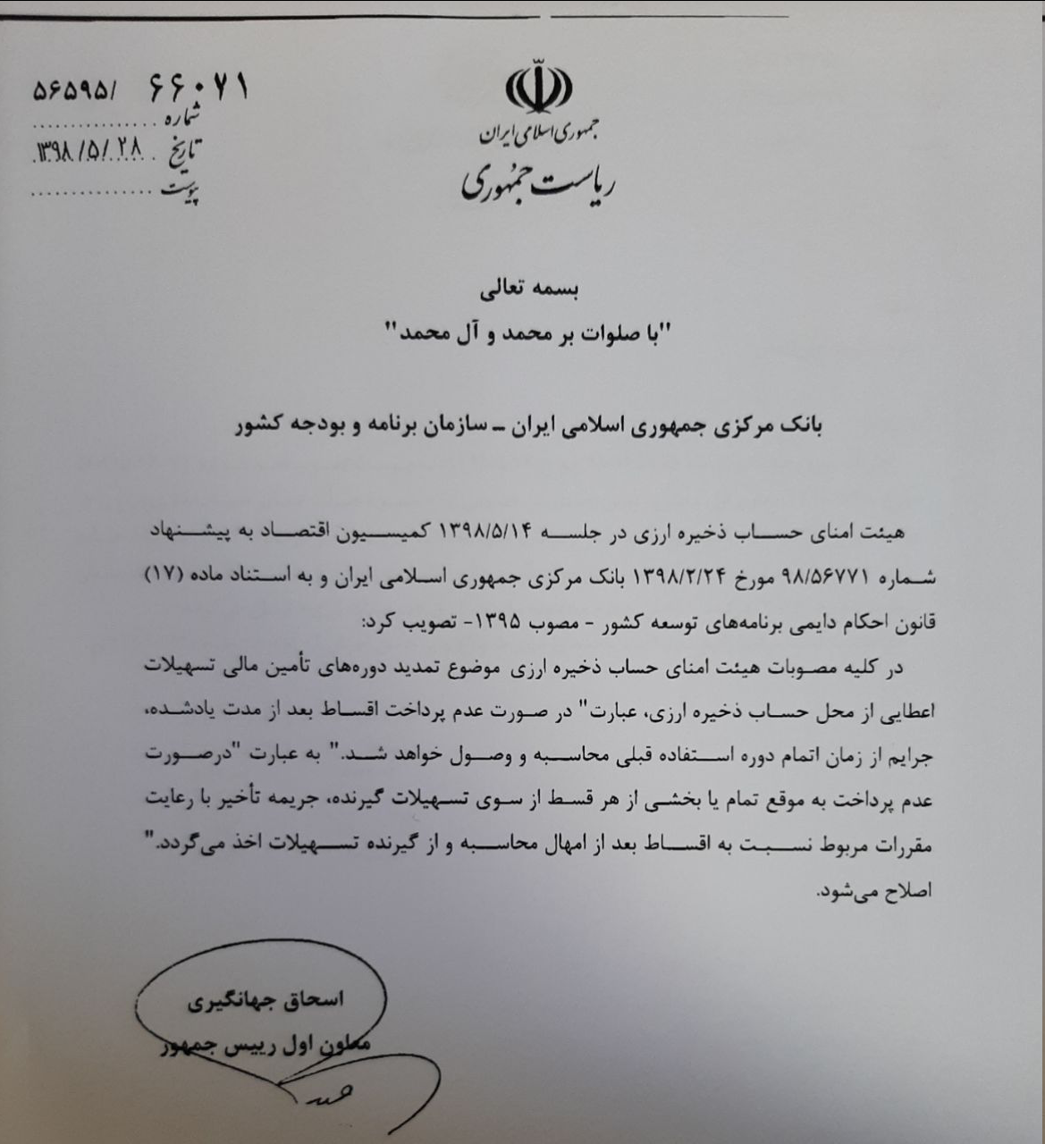 بر اساس این مصوبه در تمامی مصوبات هیات امنای حساب ذخیره ارزی موضوع تمدید دورههای تامین مالی تسهیلات اعطایی از محل حساب ذخیره ارزی، در صورت عدم پرداخت به موقع تمام یا بخشی از هر قسط از سوی تسهیلات گیرنده، جریمه تاخیر با رعایت مقررات مربوط نسبت به اقساط بعد امهال محاسبه و از گیرنده تسهیلات اخذ میگردد.