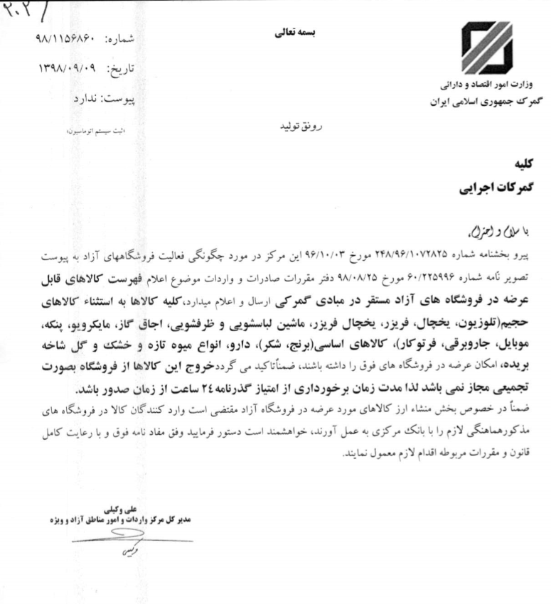 بر اساس این بخشنامه، واردکنندگان کالا در فروشگاههای آزد باید در زمینه ارز کالاهای مورد عرضه با بانک مرکزی هماهنگی داشته باشند.