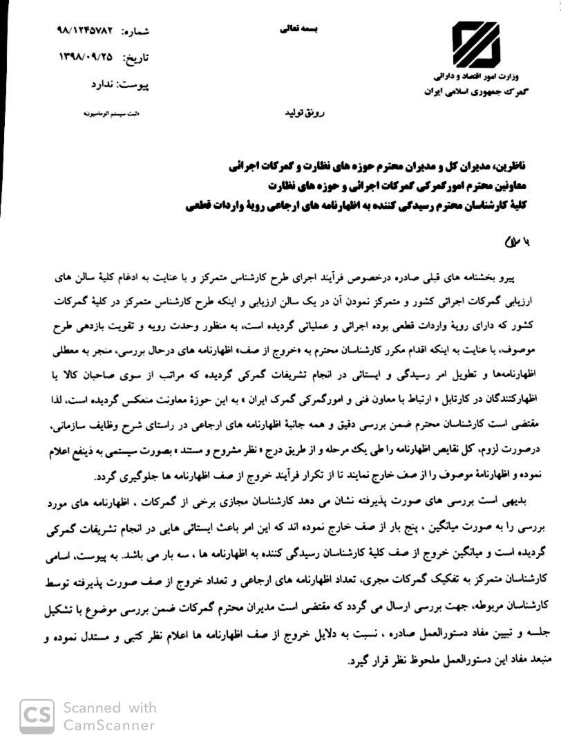 به گزارش خبرنگار ایبِنا، معاون فنی و امور گمرکی گمرک ایران در بخشنامهای با اشاره به آمار بالای خروج اظهارنامههای مورد بررسی از صف، تاکید کرد که مدیران گمرکات بررسی دلایل این موضوع را بررسی کرده و گزارش دهند.