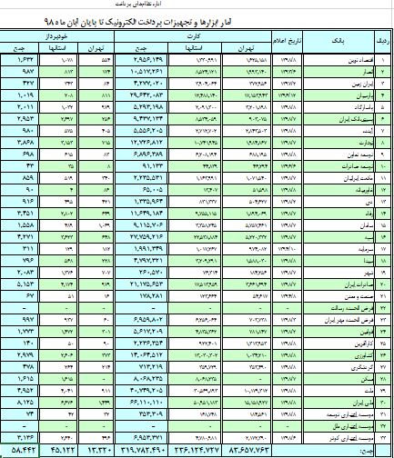 گفتنی است، در این گزارش آماری از سوی بانک قرض الحسنه رسالت و موسسه اعتباری ملل اعلام نشده است.