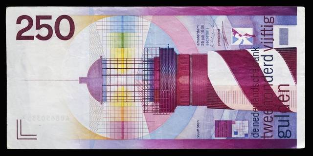 هر یورو تقریبا معادل ۲.۲ گیلدر بود. اسکناسهای هلندی از زیباترین اسکناسهای جهان در آن زمان به شمار میرفتند.