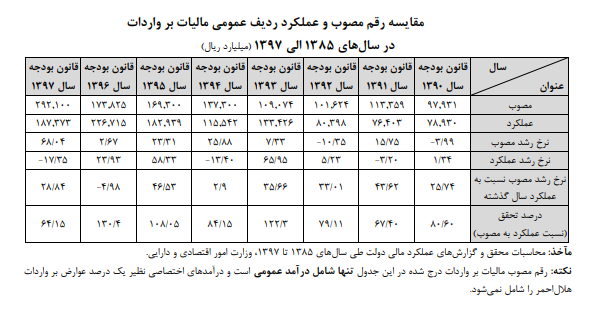 داشتن نگاه واقع‌بینانه و متناسب با عملکرد سال جاری و با توجه به شرایط و مقتضیات کشور منجر به افزایش درصد تحقق درآمد مالیات بر واردات می‌شود. کمااینکه بررسی سری زمانی عملکرد درآمد مالیات بر واردات در قوانین بودجه سنواتی طی سال‌های گذشته این ادعا را تأیید می‌کند. به عنوان نمونه همانگونه که در جدول زیر مشاهده می‌شود رشد ۵۱.۷ درصدی رقم مصوب مالیات بر واردات در قانون بودجه سال ۱۳۸۵ یا رشد ۵۲.۶ درصدی آن در قانون بودجه سال ۱۳۸۹ موجب شد که تنها ۶۹.۲۳ و ۷۶.۳۶ درصد از درآمد پیش‌بینی شده محقق گردد. از سوی دیگر افزایش ۷.۳۳ درصدی مالیات بر واردات در قانون بودجه سال ۱۳۹۳ و افزایش ۲.۶۷ درصدی در قانون بودجه سال ۱۳۹۶ که متناسب با مقتضیات و شرایط کشور در لایحه بودجه در نظر گرفته شده بود، منجر به عملکرد ۱۲۲.۳ و ۱۳۰.۴ درصدی درآمد پیش‌بینی شده گردید.