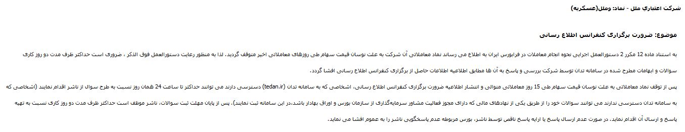 اطلاعیه برگزاری کنفرانس اطلاع رسانی شرکت اعتباری ملل