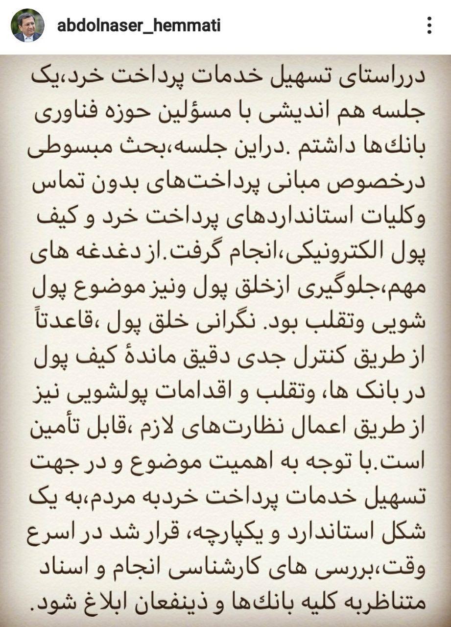 یادداشت اینستاگرامی رییس کل بانک مرکزی،