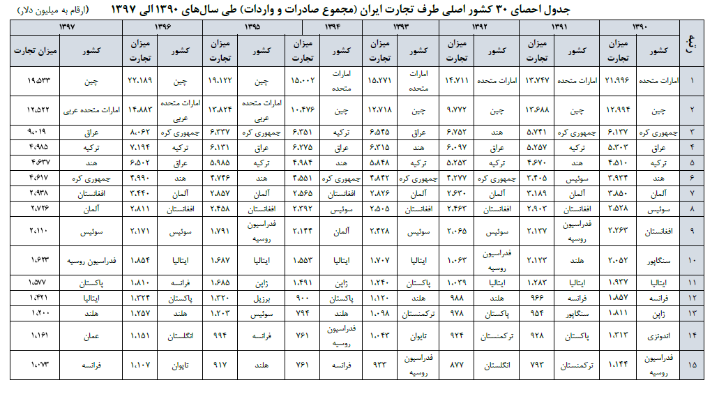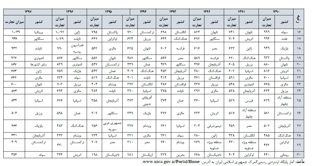 ۲. به رغم حجم بالای تجارت با کشورهای امارات متحده عربی و عراق تاکنون هیچگونه موافقتنامه بازرگانی و یا گمرکی منعقد نشده و با کشورهایی مانند چین و ترکیه تعداد موافقتنامههای فوق بسیار اندک است؛