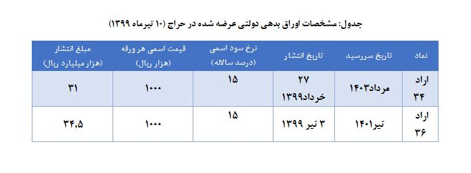 برگزاری حراج اوراق بدهی دولتی (۱۰ تیرماه ۱۳۹۹)