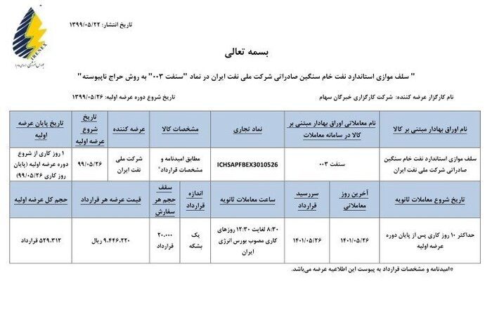 اوراق سلف نفتی دو ساله بوده و سررسید قرارداد ۲۶ مرداد ۱۴۰۱ است.