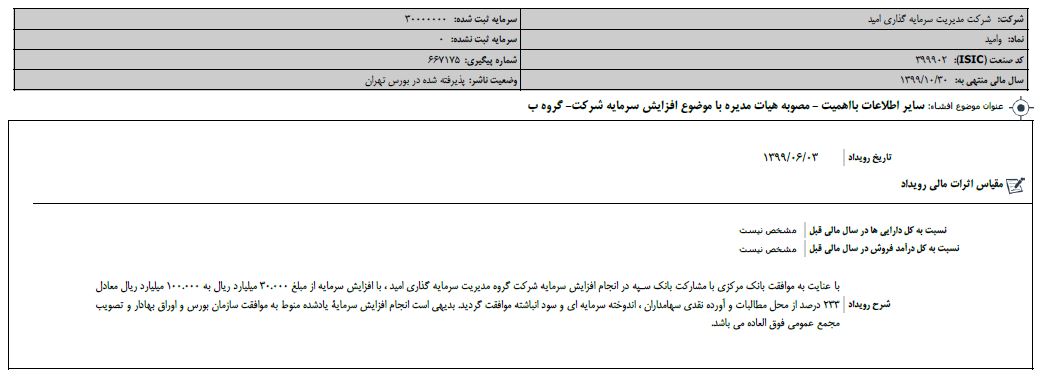 اطلاعیه افزایش سرمایه سرمایه گذاری امید