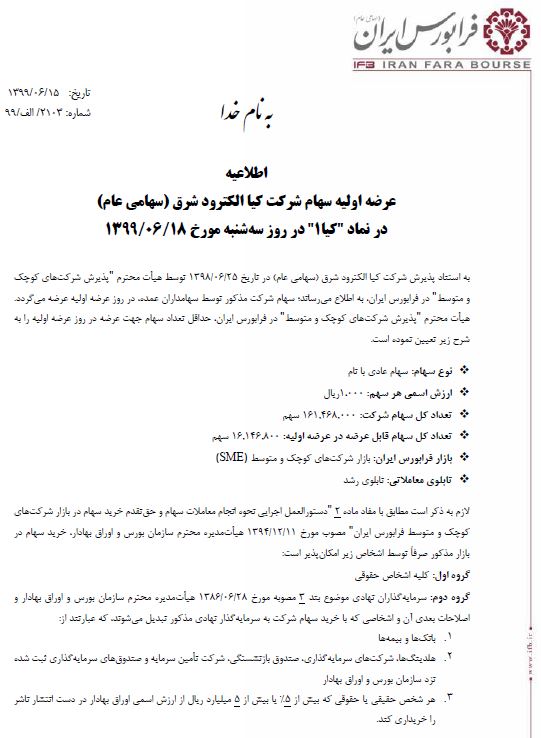 جزییات عرضه اولیه سهام کیا الکترود شرق