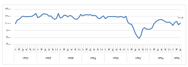 نمودار فوق به خوبی همحرکتی شاخص قیمت مسکن و نرخ دلار در دهه نود را نشان میدهد. تنها فاصه ایجاد شده در خصوص شوک ارزی سال ۱۳۹۷ هست که همانطور که ملاحظه میشود در فاصله کوتاهی شاخص قیمت مسکن این عقب ماندگی را جبران کرده است. بنابراین با اتکا به آمار میتوان گفت نرخ متوسط قیمت هر مترمربع واحد مسکونی در تهران در دهه گذشته حدودا برابر با ۱۰۰۰ دلار بوده است. گرچه توزیع جغرافیایی قیمت مسکن در مناطق تهران طیف وسیعی از ۹۷۴۶۹ هزار ریال (منطقه ۱۸) تا ۵۲۸۲۰۰ هزار ریال (منطقه ۱) را شامل میشود.