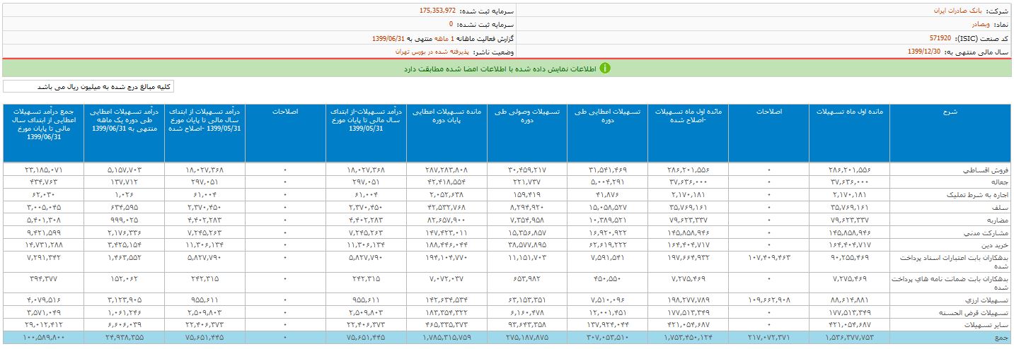 آخرین وضعیت صورت های مالی بانک صادرات