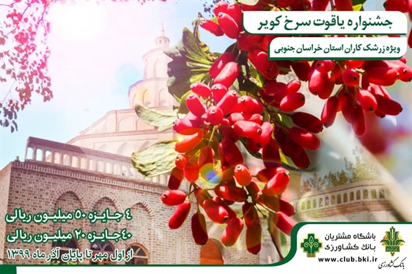 وی ضمن تاکید بر برند سازی یاقوت سرخ خراسان جنوبی گفت: به دلیل نبود برند، برخی از محصولات نامرغوب دیگر استانها با نام و برند خراسان جنوبی در بازارها عرضه میشود. شایان ذکر است در جشنواره یاقوت سرخ، ۴ جایزه ۵۰ میلیون ریالی و ۴۰ جایزه ۲۰ میلیون ریالی به کشاورزان اهدا می شود و کشاورزان عزیز برای کسب اطلاعات بیشتر می توانند به شعب بانک کشاورزی و یا سایت باشگاه مشتریان بانک کشاورزی به آدرس club.bki.ir مراجعه فرمایید.