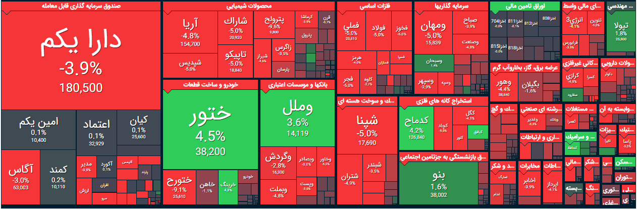 در معاملات امروز، نمادهای معاملاتی فولاد، فملی، تاپیکو، شپنا، کگل، شتران، شبندر و پارسان بیشترین تاثیر منفی را در کاهش شاخص کل بورس داشتند. در مقابل نیز نمادهای معاملاتی امین، خاهن، ختور و حافظ با بیشترین افزایش، تاثیر مثبت در برآورد نماگر کل بورس داشتند.