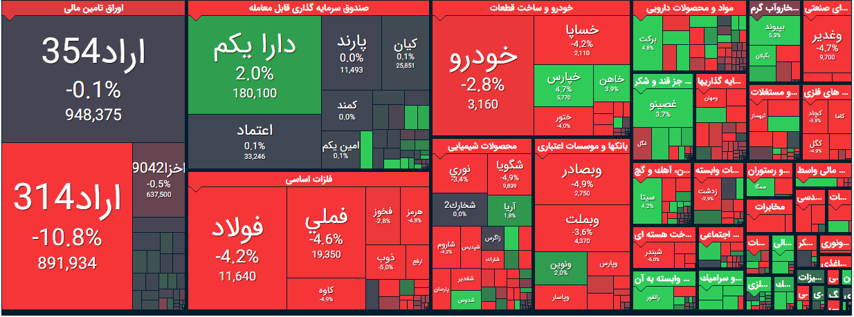 بر اساس این گزارش، در معاملات امروز بورس تهران، نمادهای معاملاتی فولاد، فملی، کگل، شتران، پارسان، شبندر، پارس، وغدیر و وبملت با بیشترین کاهش، تاثیر منفی در روند نزولی شاخص کل بورس داشتند. در مقابل، نمادهای معاملاتی رانفور، پاکشو، سیتا و خپارس، تاثیری مثبتی در جلوگیری از افت بیشتر نماگر کل بورس داشتند.