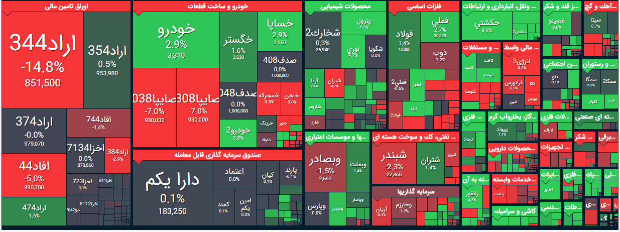 امروز بیشترین بازدهی متعلق به گروه: مخابرات/ اطلاعات و ارتباطات و کمترین بازدهی متعلق به گروه: حمل و نقل آبی/ منسوجات بود.