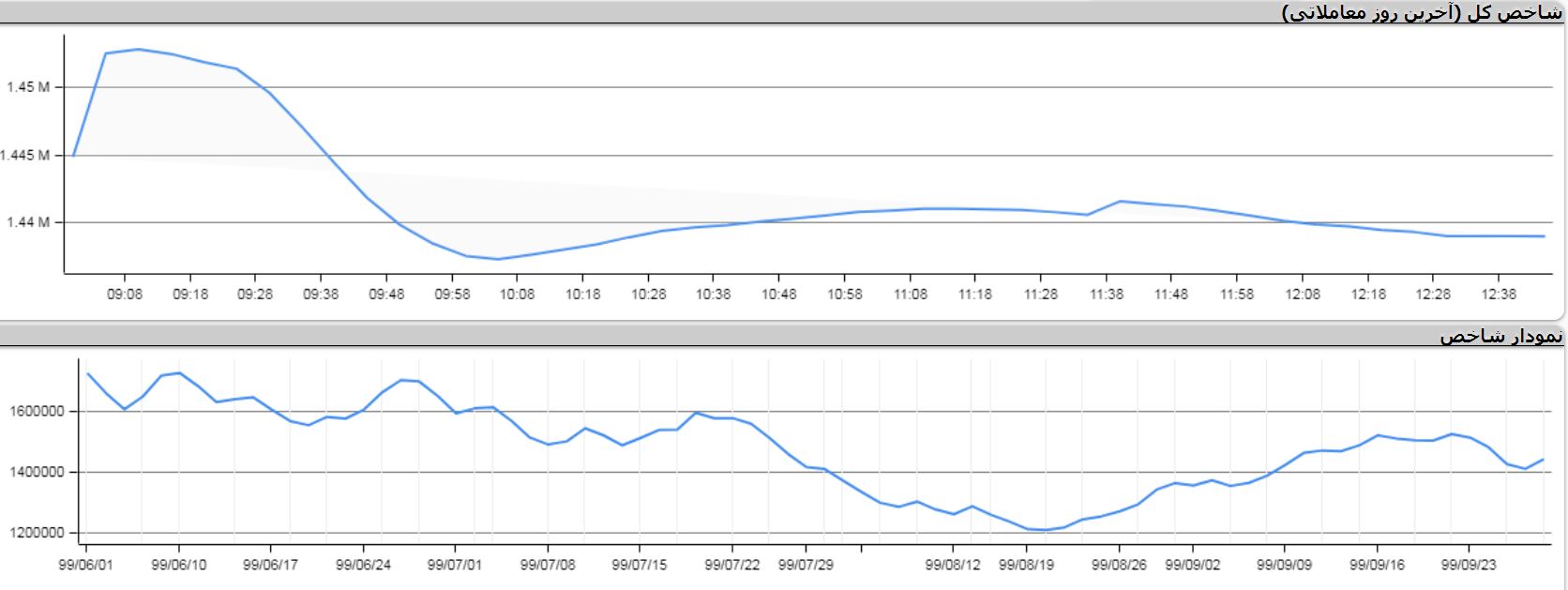 شاخص کل بورس اوراق بهادار با کاهش ۵۸۷۰ واحدی معادل ۰.۴۱ درصد به یک میلیون و ۴۳۹ هزار و ۵۴ واحد رسید. همچنین در فرابورس شاخص کل با رشد ۲۵۱ واحدی به ۱۹ هزار و ۶۸۸ واحد رسید.