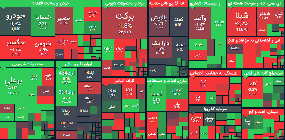 در بازار امروز، بیشترین افزایش قیمت متعلق به نماد بکاب(صنایعجوشکابیزد) با ۵ درصد رشد بود و پس از آن، نمادهای غاذر، کدما، فنورد، خموتور، سفار و آپ بود. همچنین نماد معاملاتی غبهنوش(بهنوش ایران) با ۵ درصد، بیشترین کاهش قیمت را داشت و پس از آن نیز، نمادهای دشیمی، های وب، سمازن، دفارا، کساوه و شفارس بود.
