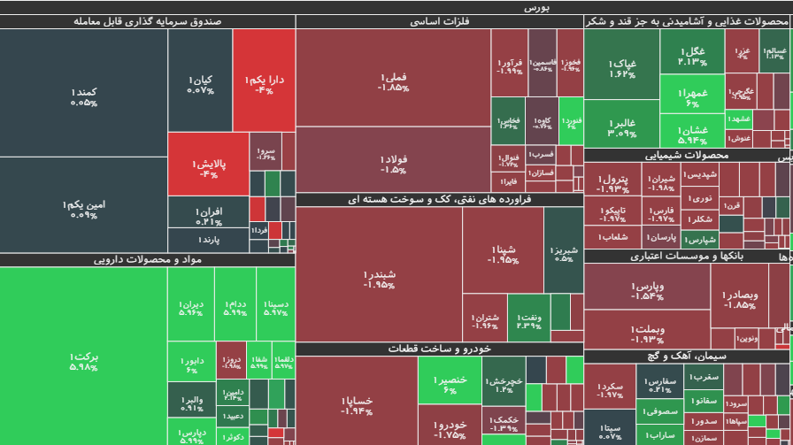 بر اساس این گزارش، در معاملات امروز بورس تهران، نمادهای معاملاتی فارس، فولاد، فملی، شستا، کچاد، تاپیکو و شپنا با بیشترین کاهش، تاثیر منفی در روند شاخص کل بورس داشتند. در مقابل، نمادهای معاملاتی فخاس، برکت، سپ و پکرمان، بیشترین تاثیر مثبت را در برآورد نماگر کل بورس داشتند.