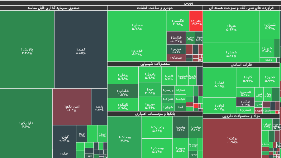 در بازار امروز، بیشترین افزایش قیمت متعلق به نماد سمازن(سیمانمازندران) با ۶.۱۹ درصد رشد و پس از آن، نمادهای وامید، فباهنر، فولاد، وتوکا و فسازان بود. همچنین نماد معاملاتی کبافق(معادن بافق) با ۱.۹۹ درصد، بیشترین کاهش قیمت را داشت و پس از آن نیز، نمادهای کمنگنز، پتایر، خشرق، غالبر، سفانو و ساراب قرار گرفتند.