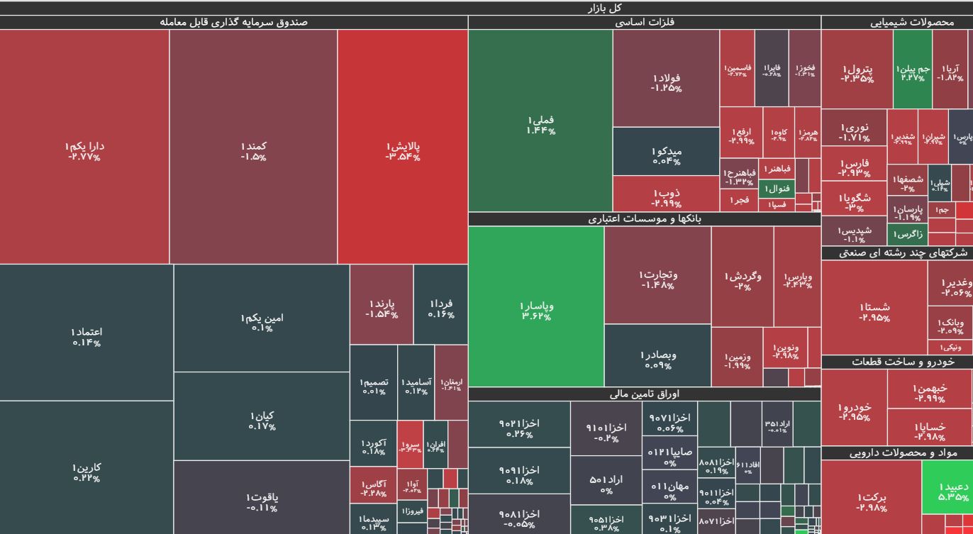 بر اساس این گزارش، در معاملات امروز بورس تهران، نمادهای معاملاتی شستا، فارس، شپنا، شتران، شبندر، خودرو و ومعادن با بیشترین کاهش، تاثیر منفی در روند شاخص کل بورس داشتند. در مقابل، نمادهای معاملاتی فملی، وپاسارو دعبید، بیشترین تاثیر مثبت را در برآورد نماگر کل بورس داشتند.