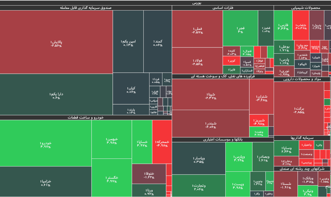 شاخص کل هم وزن نیز، با افت ۴۲۰۴ واحدی معادل ۱.۰۱ درصد، عدد ۴۱۰ هزار و ۷۰۳ واحد را به نمایش گذاشت. شاخص قیمت (هم وزن) نیز با کاهش ۲۷۲۵ واحدی به رقم ۲۶۶ هزار و ۲۹۱ واحد رسید.