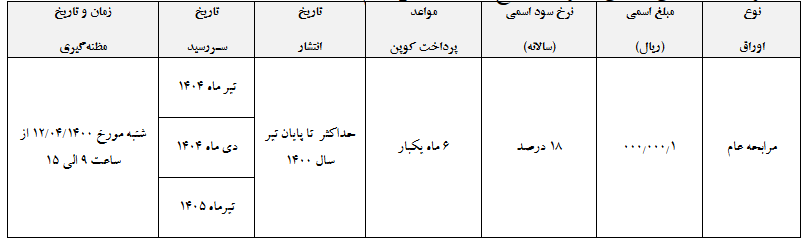 در این اطلاعیه می خوانیم: وزارت امور اقتصادی و دارایی (به نیابت از دولت جمهوری اسلامی ایران) در نظر دارد بر اساس قوانین و مقررات مربوط نسبت به انتشار و عرضه اوراق مالی اسلامی با شرایط مندرج در جدول ذیل اقدام نماید: