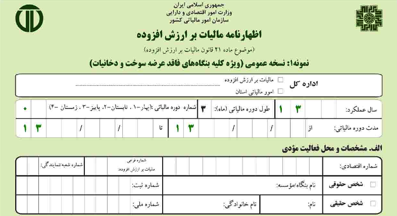 معاون درآمدهای مالیاتی سازمان امور مالیاتی کشور افزود: مطابق قانون، مؤدیان نظام مالیات بر ارزش افزوده حداکثر ۱۵ روز پس از پایان هر فصل مهلت دارند اظهارنامه مالیاتی خود را ارائه کنند، لذا روز سه شنبه ۱۵ تیرماه ۱۴۰۰ آخرین مهلت ارایه اظهارنامه مالیات بر ارزش افزوده دوره سه ماهه اول ۱۴۰۰ نیز خواهد بود.