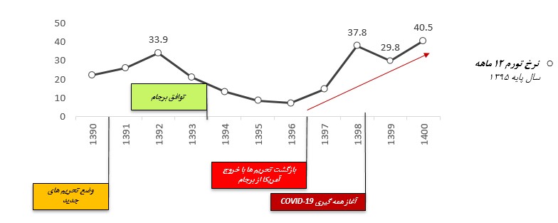 روند افزایشی نرخ تورم از سال ۱۳۹۶