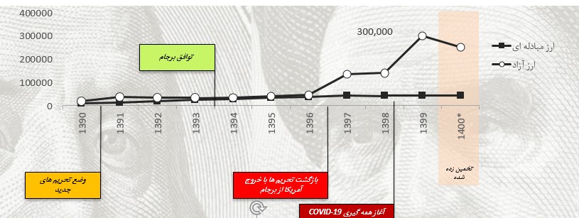 درپی کاهش ارزش ریال از سال ۹۵، ایرانیان برای حفظ دارایی‌های خود به‌سمت بازارهای دیگری مانند خرید دلار، سکه، طلا، مسکن و سرمایه‌گذاری در بورس سوق پیدا کردند. در طی این مدت‌زمان، دلار بیش از ۶ برابر رشد کرد و بازدهی ۶۱درصدی را در سال ۹۹ داشت. قیمت سکه و طلا نیز از سال ۹۵، میزان ۸/۹درصد رشد داشته است. همچنین، سکه ۸۱درصد و طلا ۷۳درصد در سال ۹۹ بازدهی داشته‌اند. شاخص بورس رشد ۲۲درصدی را از سال ۹۵ شاهد بوده است. توجه به بورس از اواسط سال ۹۸ بیشتر شد و این بخش از بازار بیشترین جذب نقدینگی را در بهار ۹۹ به خود دید. بازدهی بورس در سال ۹۹، میزان ۱۵۷درصد بوده است. بازار مسکن نیز از سال ۹۵ رشد داشت و این بخش با رشد ۵برابری، در سال ۹۹ بازدهی ۸۳درصدی داشته است.