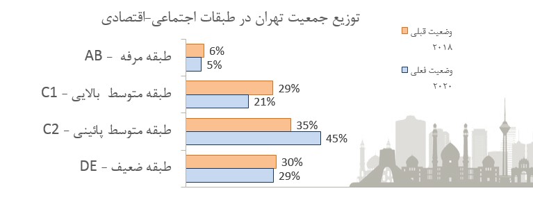 افزایش شدید هزینه‌های زندگی به‌خصوص در کلان‌شهر تهران، به تغییر ساختار طبقات اجتماعی و اقتصادی جمعیت منجر شده است. در این تغییر، جابه‌جایی در طبقات مختلف به گونه‌ای است که طبقات متوسط بزرگ‌تر شده و حدود ۴۵درصد از خانوارها در تهران در طبقۀ متوسط پایینی جای گرفته‌اند.