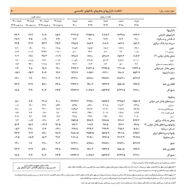همچنین دیگر بخش متعلق به دارایی ها، مربوط به میزان سپرده بانک ها نزد بانک مرکزی است که این بخش در بانک های تخصصی در خرداد ۱۴۰۰ با افزایش ۵۷.۳ درصدی نسبت به خرداد سال ۹۹ به رقم ۳۲۵.۴ هزار میلیارد ریال رسیده و این در حالی است که این رقم در مدت مشابه سال گذشته، ۲۰۶.۹ هزار میلیارد ریال ثبت شده است.