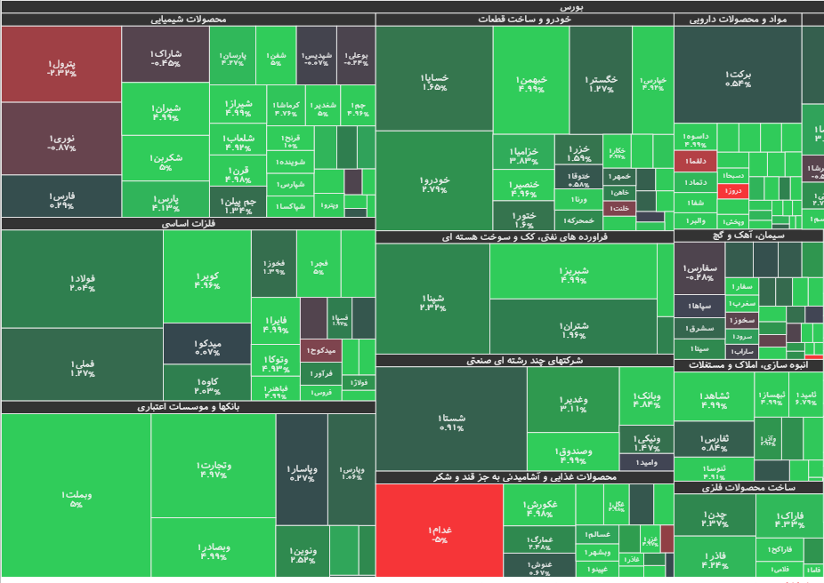 شاخص کل هم وزن نیز، با رشد ۱۱۰۸۱ واحدی معادل ۲.۵۲ درصد، عدد ۴۵۱ هزار و ۲۱۹ واحد را به نمایش گذاشت. شاخص قیمت (هم وزن) نیز با افزایش ۶۹۹۲ واحدی به رقم ۲۸۴ هزار و ۷۲۱ واحد رسید.