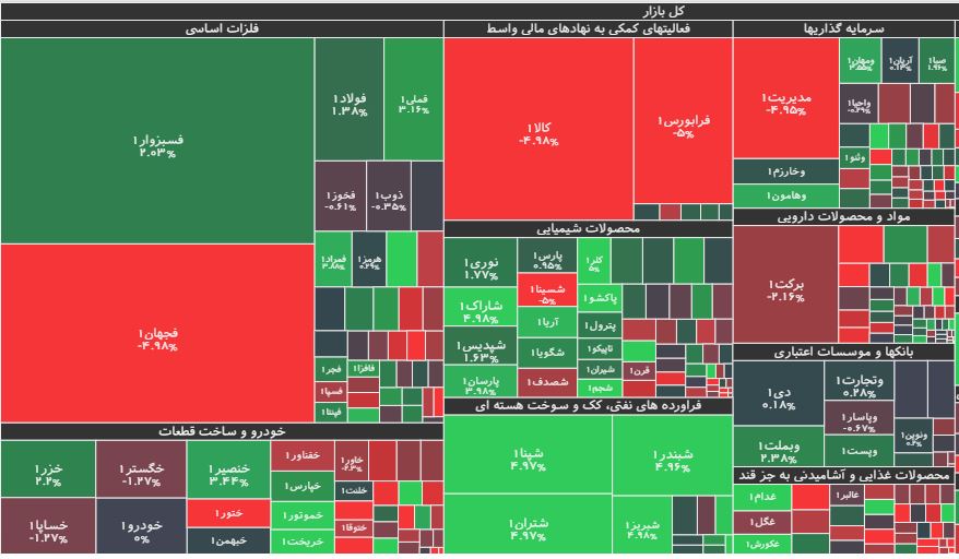 در بازار امروز، بیشترین افزایش قیمت متعلق به نماد غشصفا(شیرپاستوریزهپگاهاصفهان) با ۴.۹۶ درصد رشد و پس از آن، نمادهای لسرما، اتکام، خریخت و خزر بود. همچنین نماد معاملاتی بکاب (صنایعجوشکابیزد) با ۵ درصد، بیشترین کاهش قیمت را داشت و پس از آن نیز، نمادهای سنیر، آبادا، کدما و ولپارس قرار گرفتند.