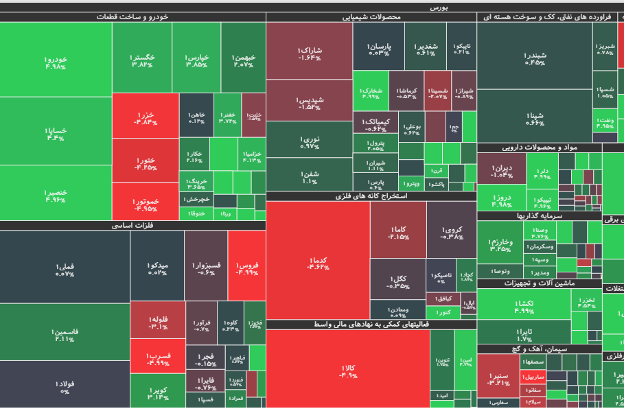 در بازار امروز، بیشترین افزایش قیمت متعلق به نماد وایران(لیزینگ ایرانیان) با ۴.۹۸ درصد رشد و پس از آن، نمادهای دلقما، شلعاب، پاسا و غبشهر بود. همچنین نماد معاملاتی غشصفا(شیرپاستوریزهپگاهاصفهان) با ۵ درصد، بیشترین کاهش قیمت را داشت و پس از آن نیز، نمادهای لپارس، ساربیل، رتکو و خموتور قرار گرفتند.