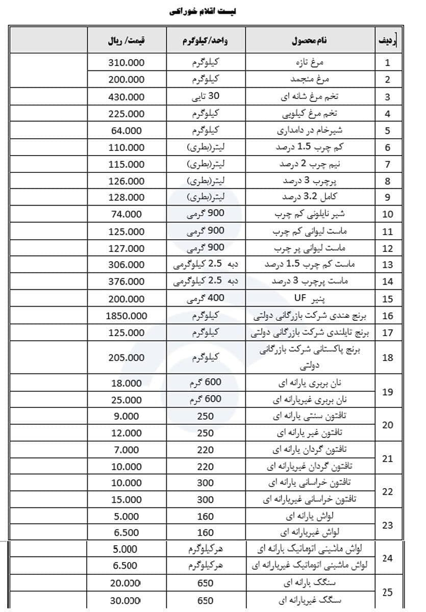 به گزارش ایبِنا، معاونت توسعه بازرگانی وزارت جهاد کشاورزی فهرست قیمت رسمی اقلام خوراکی را اعلام کرد.